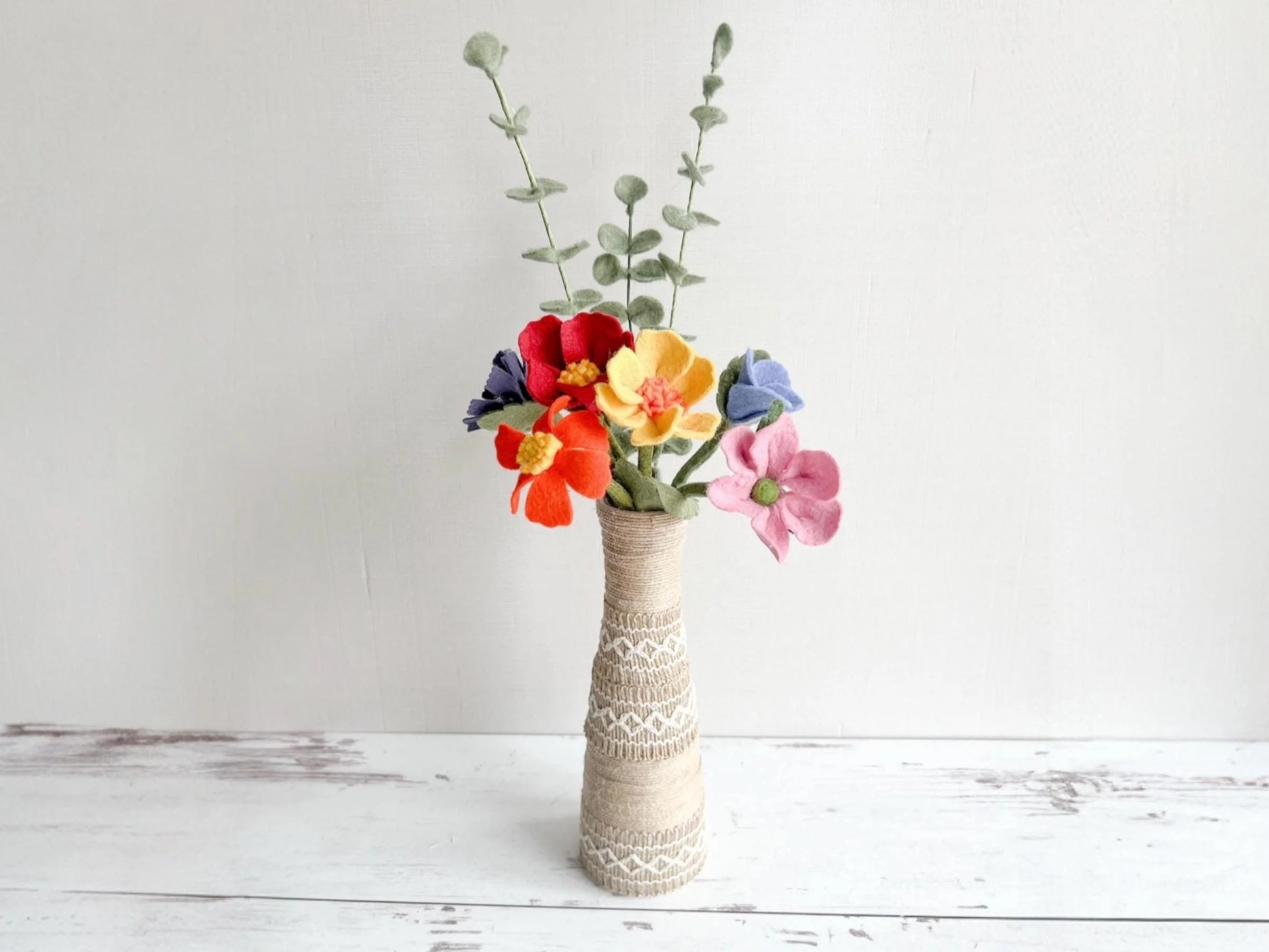 This 6 pack is one of my best sellers: it's super versatile. These ones are different; they come with felt covered stems so they are appropriate for child's play if desired. If you'd like to add aa three pack eucalyptus here is the link: https://mellymeierbotanicals.etsy.com/listing/1554485967